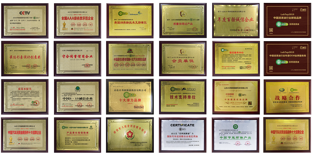 The enterprise has passed the ISO 9001 quality management system and ISO 14001 environmental management system dual certification; through the European Automobile Manufacturers Association ACEA certification; the products have been Mercedes-Benz, BMW, Porsche, Volvo, Volkswagen, Jaguar Land Rover six major car manufacturers more than ten certifications, and the United States General Motors DEXRON VI subassembling certification; the enterprise is the member of the China Lubricating Oil Industry Association! Our company is a member unit of China Lubricant Industry Association, and has won many awards, such as the honorary certificate of contract-abiding and credit-abiding enterprise issued by Shandong Province Administration for Industry and Commerce.